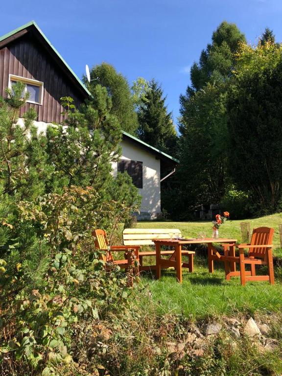 Krásná poloha v nádherné krajině, klidné a romantické místo... s grilem a posezením v zahradě... dobrý výchozí bod pro výlety... bezproblémové vyřízení s ochotným hostitelem...